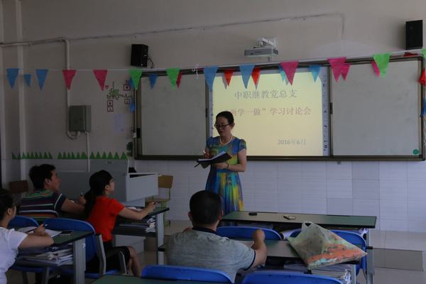 2016年6月17日上午,中职继教党总支“两学一做”学习讨论会在2506教室召开,中职部党总支副书记陈菊仙、中职部副主任余莲君、继续教育培训部主任黄文清及其他党员同志出席大会。会议由陈菊仙副书记主持。