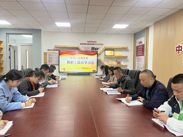 为深入学习贯彻党的二十大精神,推进全系教职工从三苏廉洁文化中汲取营养,筑牢防腐拒变思想防线。4月6日,中等职业教育部在党建活动室召开专题政治学习会,会议由党总支副书记余志刚主持,全系教职工参会。