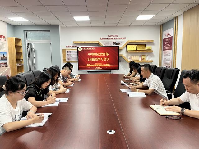 6月7日,中等职业教育部在党建会议室召开教职工政治学习会议,深入学习领会习近平总书记在文化传承发展座谈会上的重要讲话精神。系党总支副书记余志刚主持会议并讲话。系主任张彬出席会议。