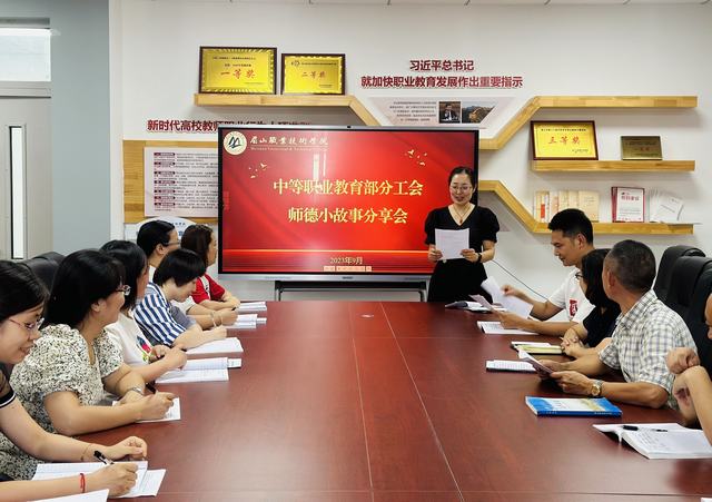 9月13日,中职(技师教育)与职业培训部党总支和工会在党建活动室组织开展师德师德建设学习会暨“师德小故事”分享活动,中等职业教育部全体教职工参与活动,党总支副书记余志刚主持活动。