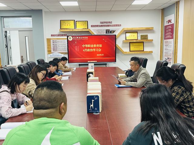 4月3日,中等职业教育部在党建活动室召开4月政治学习会,党总支副书记余志刚主持会议。