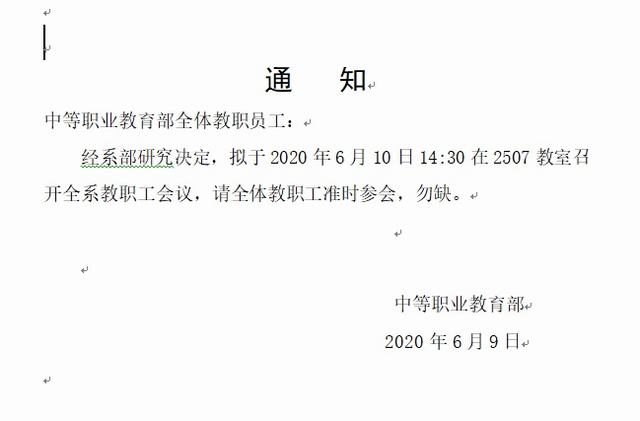 关于召开中等职业教育部教职工大会的通知