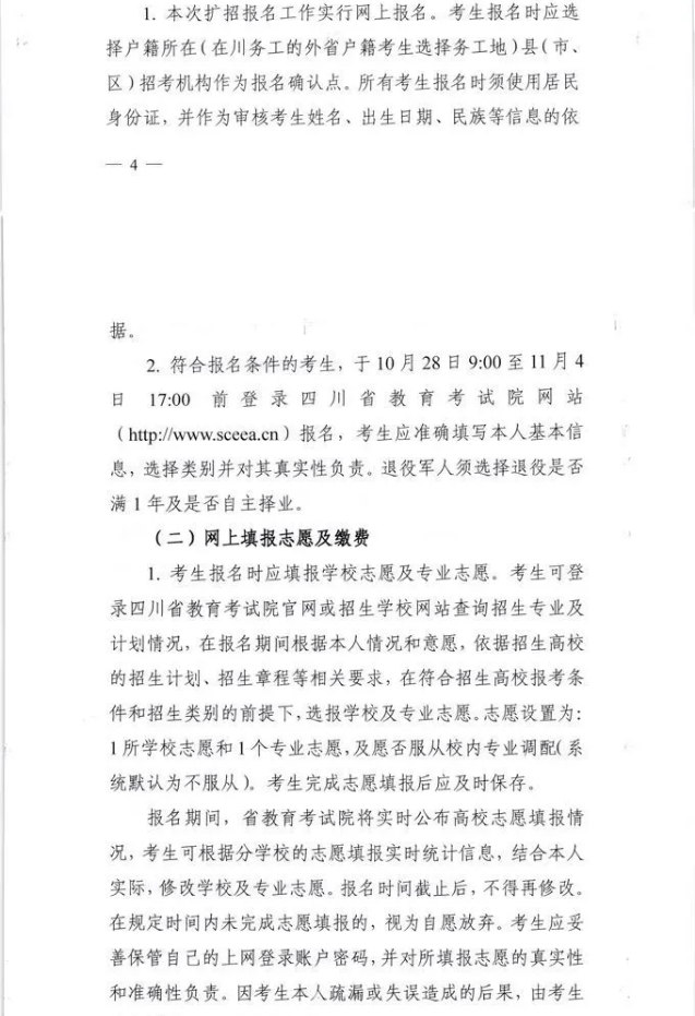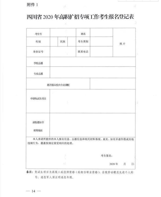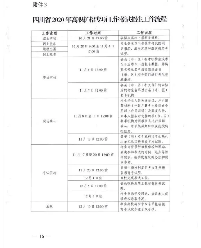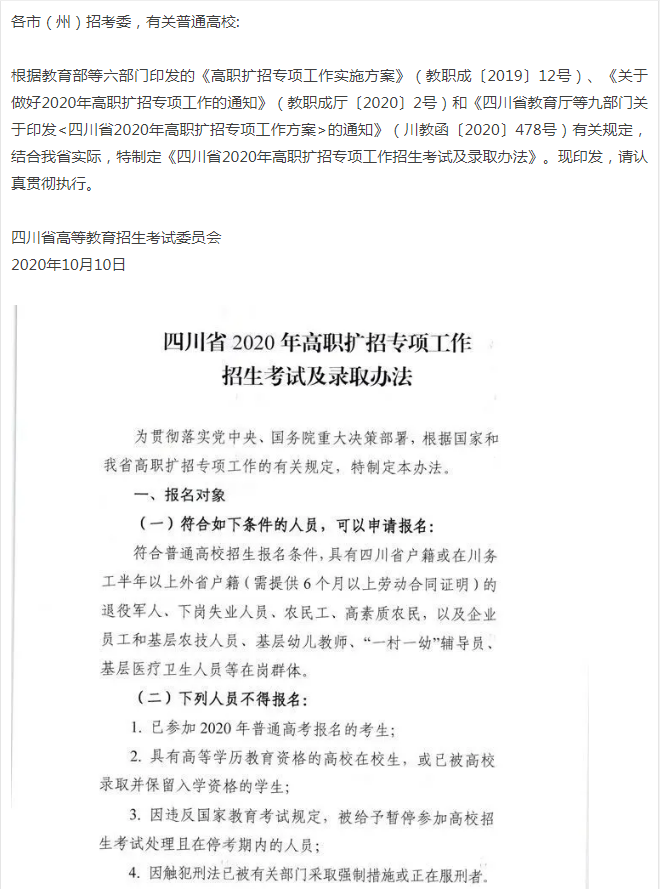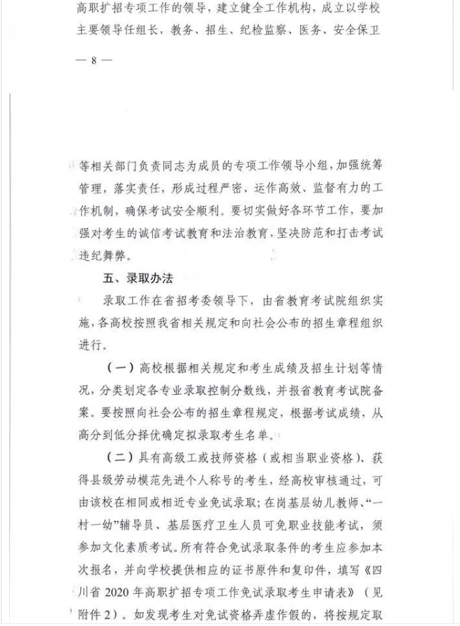 关于四川省2020年高职扩招专项工作招生考试及录取办法的通知