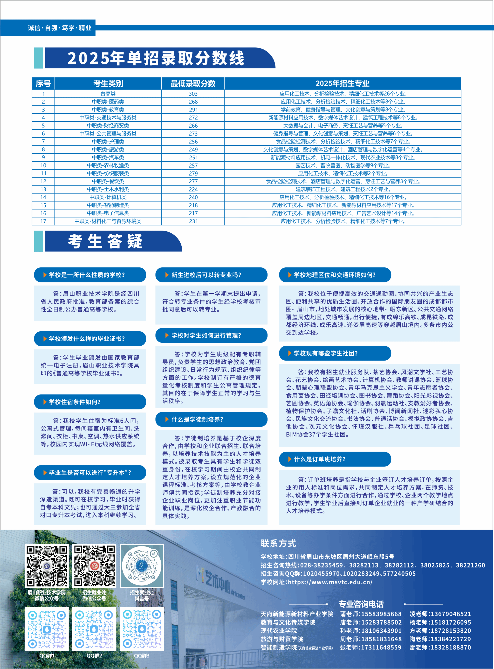 眉山职业技术学院2025年“9+3”高职单招成绩公布