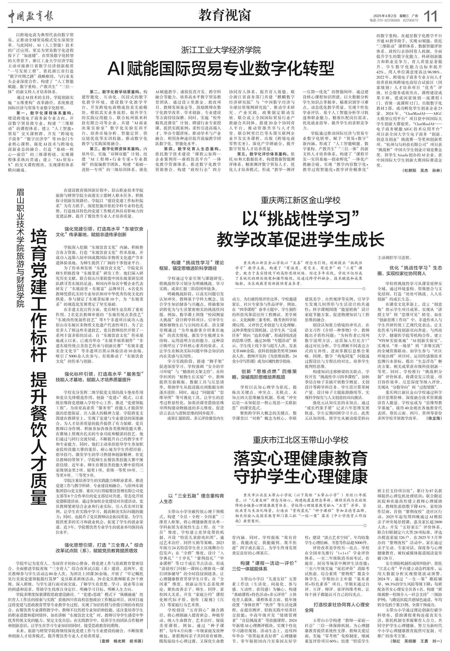 在建设教育强国新征程中,眉山职业技术学院旅游与财贸学院全面落实立德树人根本任务,积极探寻创新发展路径。学院以“建设党建工作标杆院系”为有力抓手,深度挖掘并依托学科专业特色优势,打造独具特色的党建工作模式和具有影响力的党建品牌,提升了餐饮类专业人才培养质量。