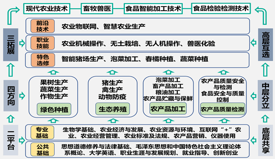 三是课程动态优化: 打造“两平台四方向三拓展”课程体系,夯实农业技能根基,灵活适应智慧农业等新兴业态。