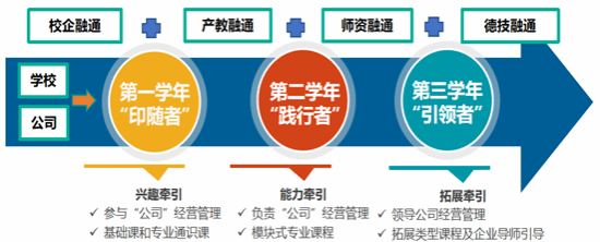 图3 “双主体四融通三牵引”人才培养模式