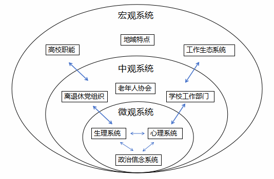 图3 离退休工作社会生态系统理论框架图(图中双向箭头代表双向作用)
