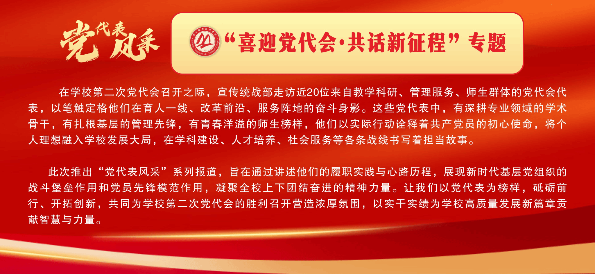深感使命光荣,定当不负重托。作为党代表,我将以高度的政治责任感履职尽责,认真参与大会各项议程,推动学校第二次党代会精神落地见效。立足教师岗位,坚守立德树人初心,深耕三尺讲台传道授业,以扎实学识启智润心;恪守师德师风准则,言传身教塑品格,争当新时代“四有”好老师标杆,为学校高质量发展贡献全部力量。