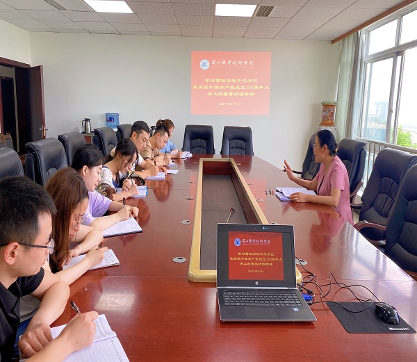 9月1日,学校党委副书记杨成芬在行政楼三楼会议室以“学习贯彻习近平总书记在庆祝中国共产党成立100周年大会上的重要讲话精神”为题,为组织人事部工作人员上了一堂精彩的党课。