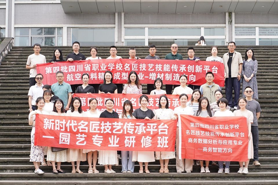 5月23日—25日,四川省第四批职业学校李倩名师(名匠)工作室、白晶斐名匠技艺传承平台、张娟娟名匠技艺传承平台、卜军伟名匠技艺传承平台在学校联合举办“弘扬教育家精神 创新名匠技艺传承”研修活动。