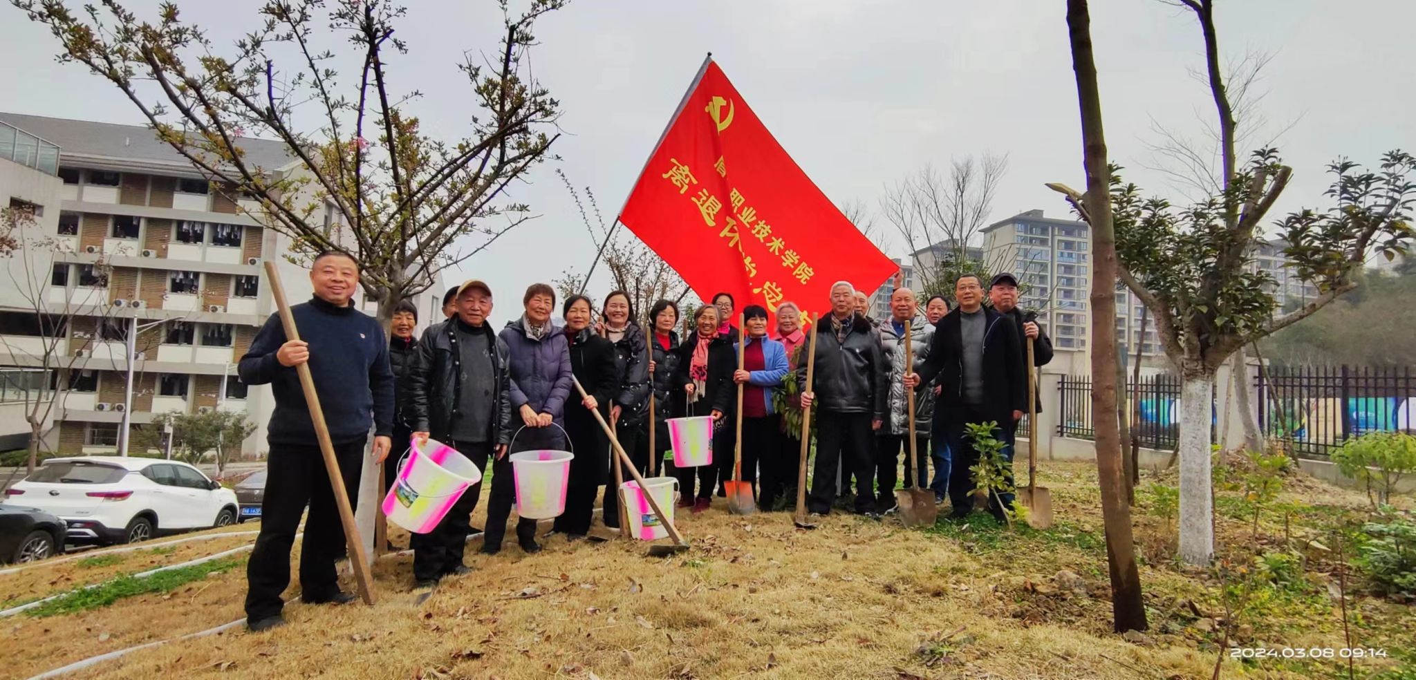 最美人间三月天,生机勃勃春意浓。为深入学习贯彻党的二十大精神,牢固树立绿色发展理念,进一步丰富离退休党员的组织生活,发挥老同志的干劲与热情,在“三八”国际劳动妇女节和植树节来临之际,眉山职业技术学院离退休党总支党员重返校园,开展主题党日活动。