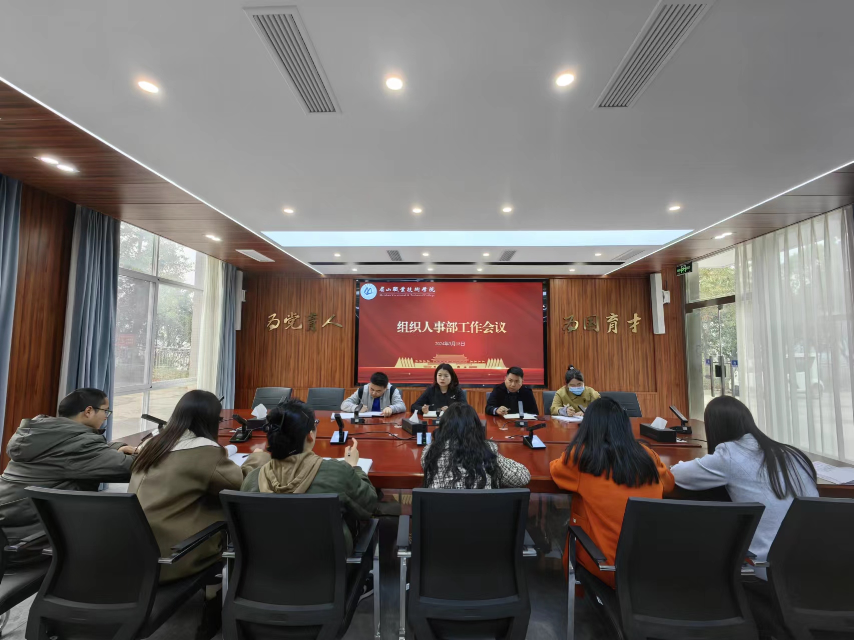 3月18日,组织人事部在行政楼一楼会议室召开部门工作会议,听取全体干事近期重点工作推进情况报告,并安排部署下一阶段工作。组织人事部副部长(主持工作)廖敏主持会议并讲话。
