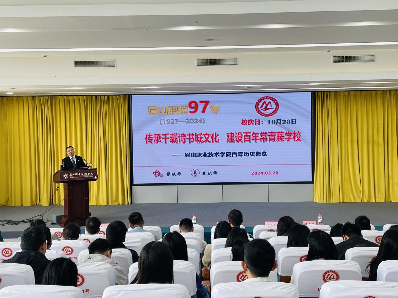 3月20日下午,学校开展了2024年新教师系列培训—校情校史介绍与三苏文化解读,特邀学校退休干部、副教授、四川省关工委宣讲团特聘宣讲员、眉山市关工委青少年思想道德教育宣讲团成员张献华来校作专题讲座。