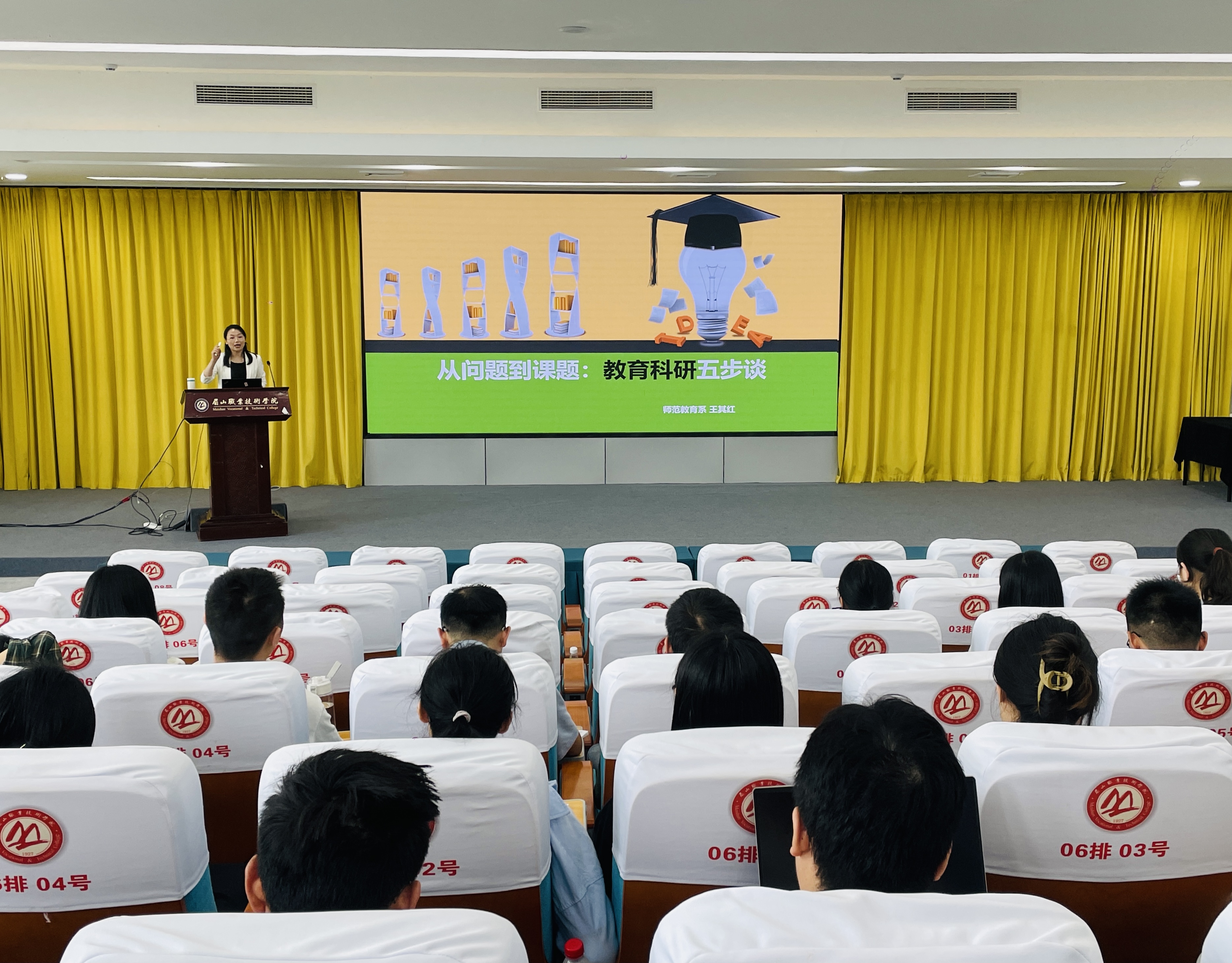 2024年5月29日,我校在招就中心二楼开展了2024年新教师系列培训—从问题到课题、教育科研五步谈,特邀师范教育系副主任、教育学博士王其红为49名新教师作专题讲座。
