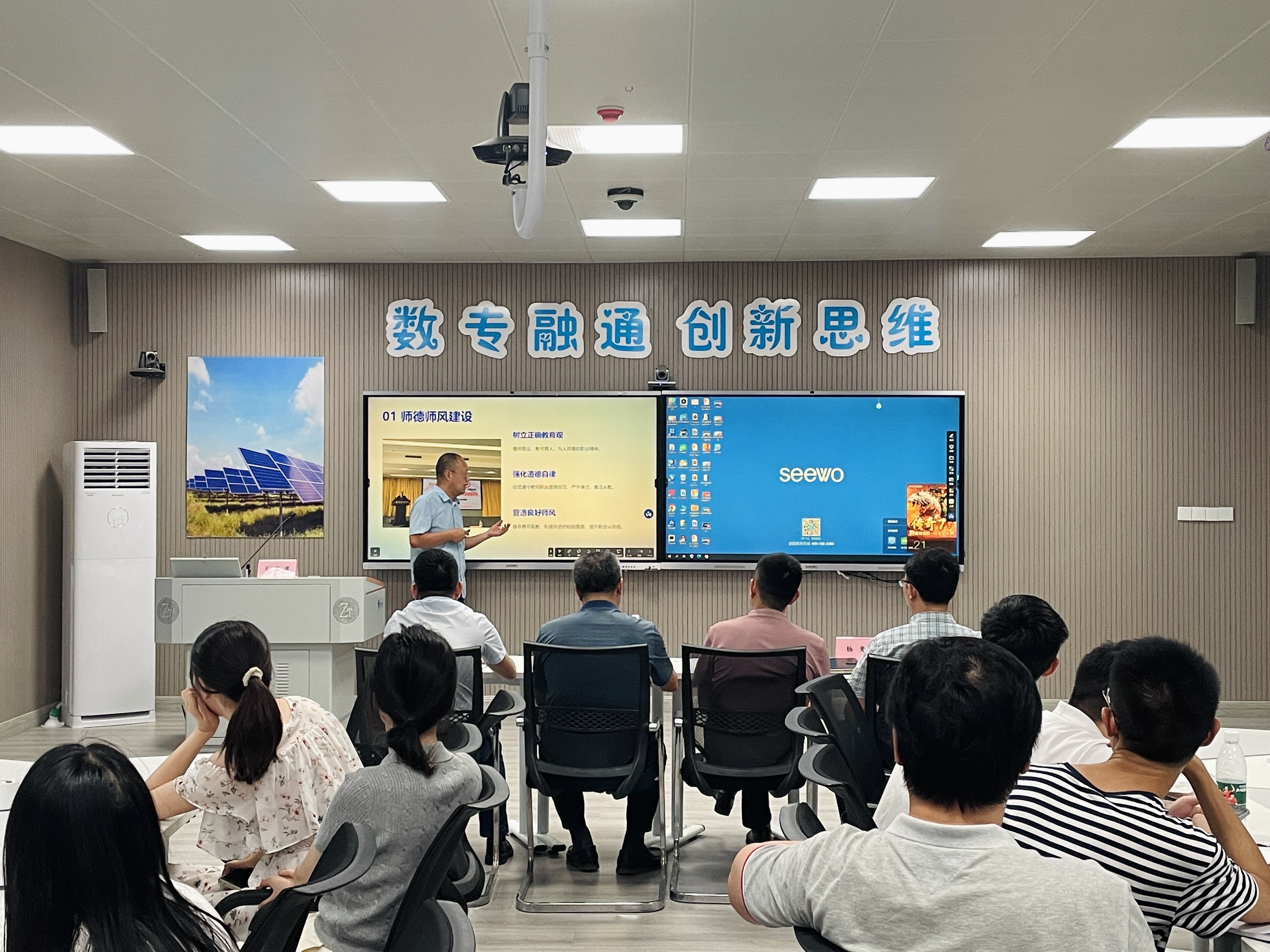 2024年6月12日,我校在4303开展了2024年新教师系列培训—学习成果汇报、以交流促分享。学校党委委员,工会主席彭书君出席并做讲话。