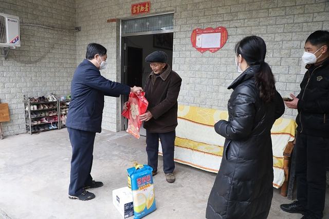 代贤军一行走访了徐庙村老党员、脱贫户、退居二线村干部、致富带头人,详细了解了他们的身体状况、务工就业、经济收入、子女就学和帮扶保障政策落实等情况,并为他们送上了米、油等物资,为他们贴上春联,代贤军鼓励他们坚定信心,再接再厉,在党和政府的帮助下,把日子过得红红火火,祝愿他们度过一个欢乐、幸福、祥和的春节。