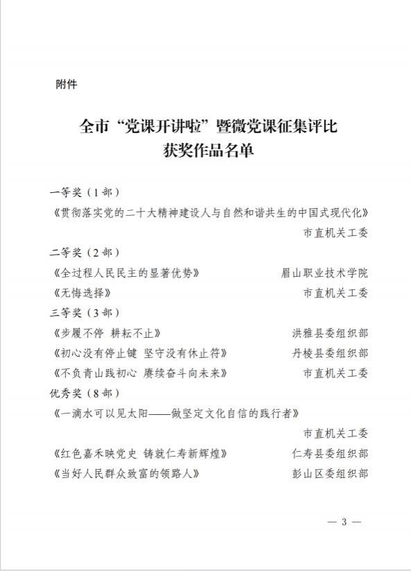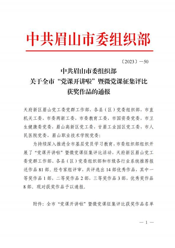 附件:中共眉山市委组织部关于全市“党课开讲啦”暨微党课征集评比获奖作品的通报