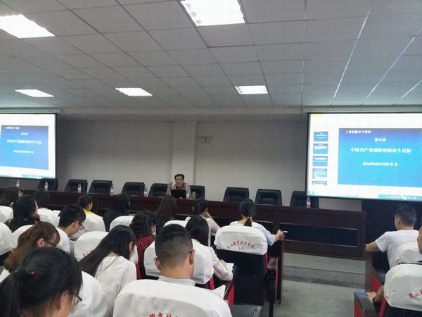 典礼结束后,张望为参训学员上了第一堂“中国共产党现阶段的奋斗目标”专题培训课。张院长结合习近平系列重要讲话精神为同学们深入讲解了“两个一百年”和“实现中华民族伟大复兴的中国梦”奋斗目标,阐释了“四个全面”战略布局和“五位一体”的发展理念,明确了新常态下如何做一名合格的共产党员,让全体参训学员深受启发。同学们纷纷表示会努力学习,争取早日成长为一名真正的共产党员。