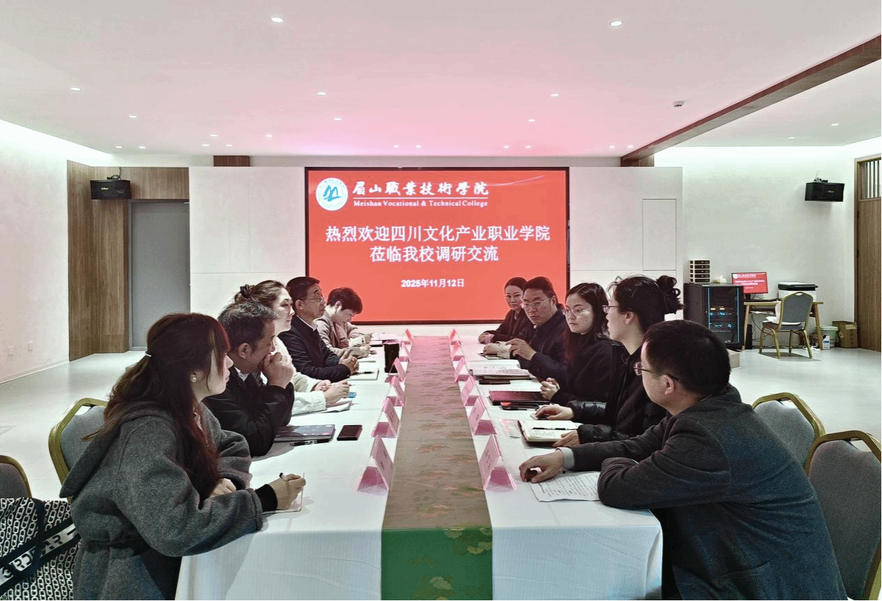 2025年11月12日,四川文化产业职业学院党委委员、副院长陈敬贵一行6人来我校开展专题调研交流。双方围绕教师队伍建设、工作室及团队建设进行了深入交流。党委副书记陈光辉、纪委书记梁昌秋参加座谈。