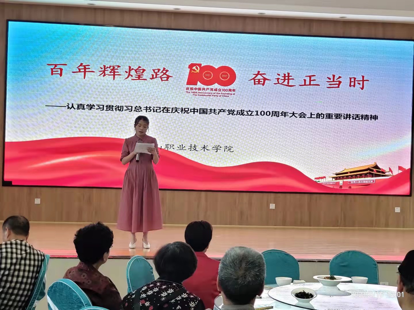 活动首先由学校马克思主义学院教师雷嘉欣带领大家学习习近平总书记“七一”重要讲话精神。学习习近平总书记“七一”重要讲话精神主要围绕四个宣告、四个成就、实现中华民族伟大复兴、建党精神展开。接着雷嘉欣以习近平总书记给全国黄大年式教师团队代表的回信为内容进行了学习。最后,以习近平总书记对全国广大教师的殷切期望将本次活动推向了高潮。