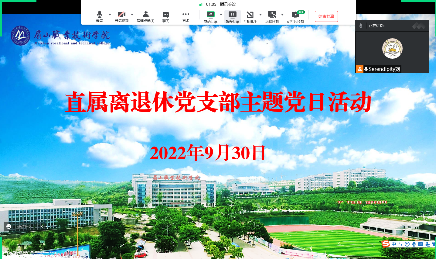 9月30日,我校直属离退休党支部以线上形式开展主题党日活动,集中学习《眉山市委组织部关于严格执行党的组织生活制度的通知》。
